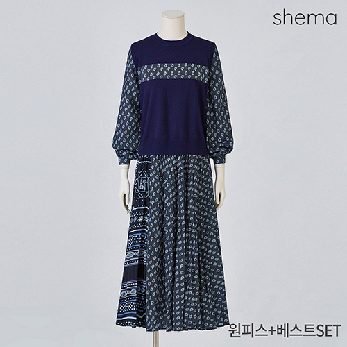 페이즐리플리츠원피스+니트조끼세트_HKF1OP3081