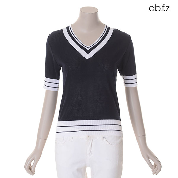 [ab.f.z] 모노 더블라인 V넥 반팔 니트 (AFT3GW37A)