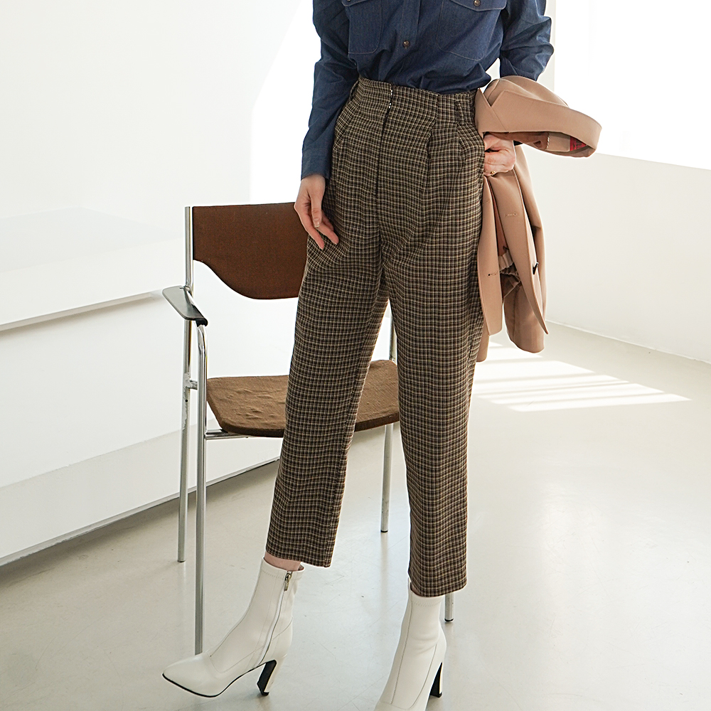 핀턱 포인트 체크 슬랙스 팬츠 LI10SL106