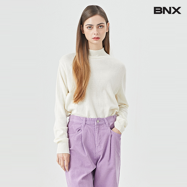 하프 넥 리얼 캐시 베이직 긴팔 니트 (BT4KP031L0)