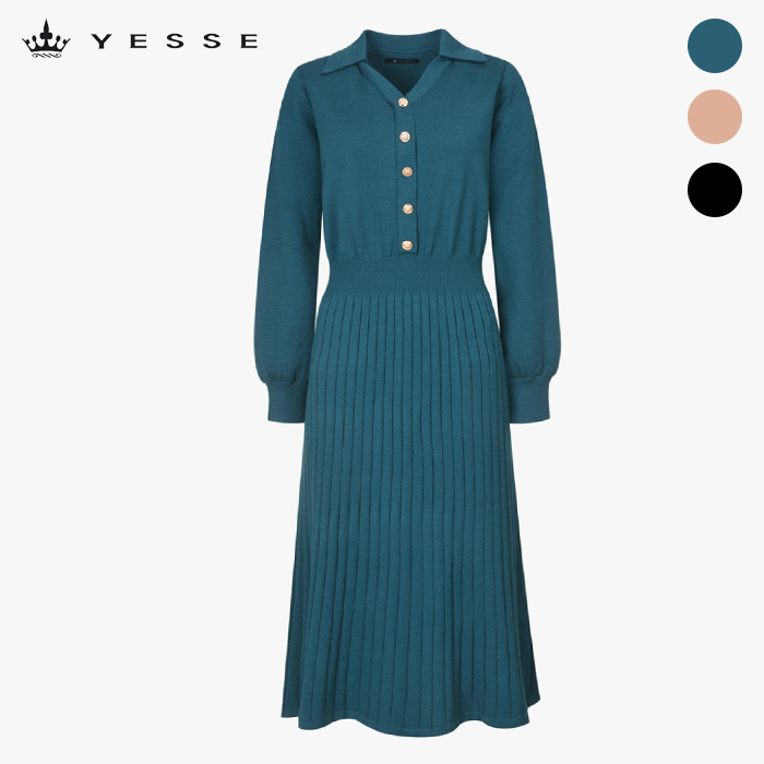 [본사직영] (예쎄) 금장 버튼 카라 니트 원피스(ZYV01KO01M)