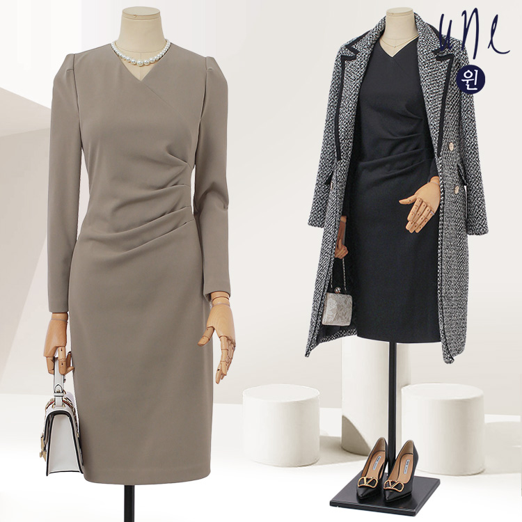윈(une) [기모안감]모던핀턱드레이프기모원피스