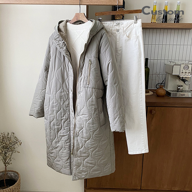 물결 퀼팅 후드 롱 패딩점퍼_C2112PD012D