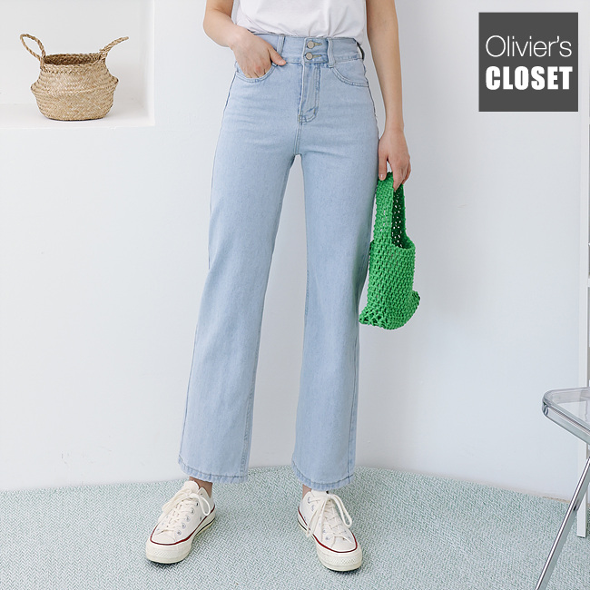 와이드 투버튼 뒷밴딩 데님팬츠_O2202DP009A
