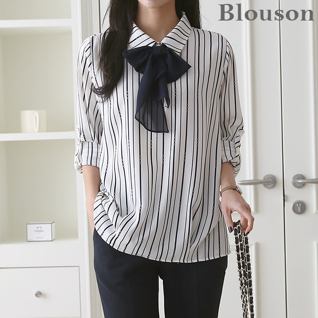 [한정/특가] 쉬폰타이 스트라이프 블라우스_B2202BL049A