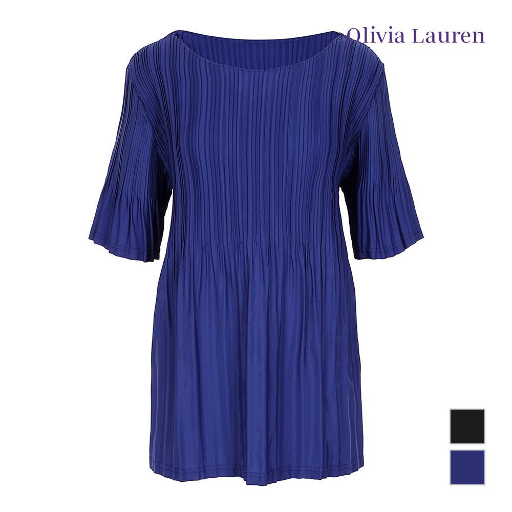 [올리비아로렌] 플리츠 반팔 라운드넥 블라우스_VOCNSWM6416
