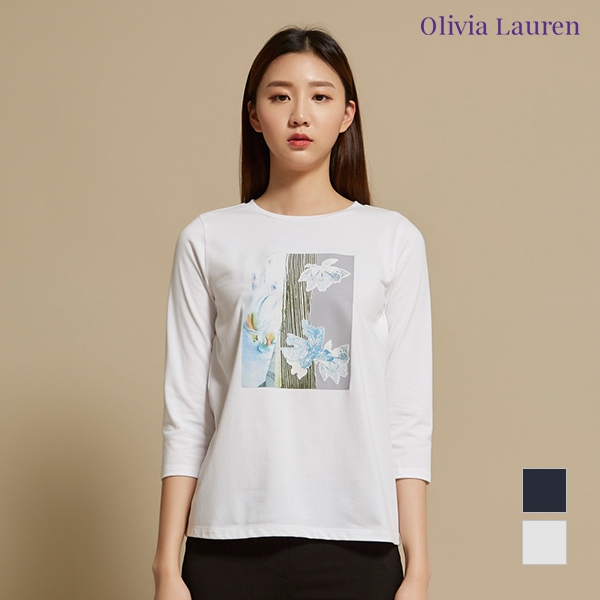 [올리비아로렌] 멀티스트라이프 플라워프린트 티셔츠_VOBALWM3271
