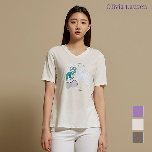 [올리비아로렌] 브이넥 원포인트 프린트 티셔츠_VOBASWM4141