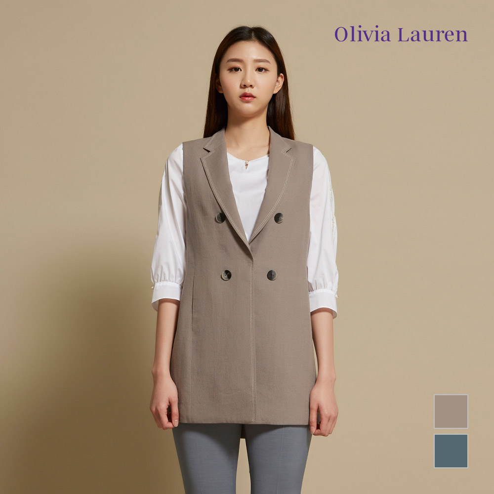 [올리비아로렌] 소뿔 장식단추 린넨 베스트_VOCQCWM4331