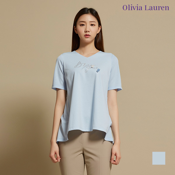 [올리비아로렌] 레터링 수술장식 브이넥 티셔츠_VOCASWM5311
