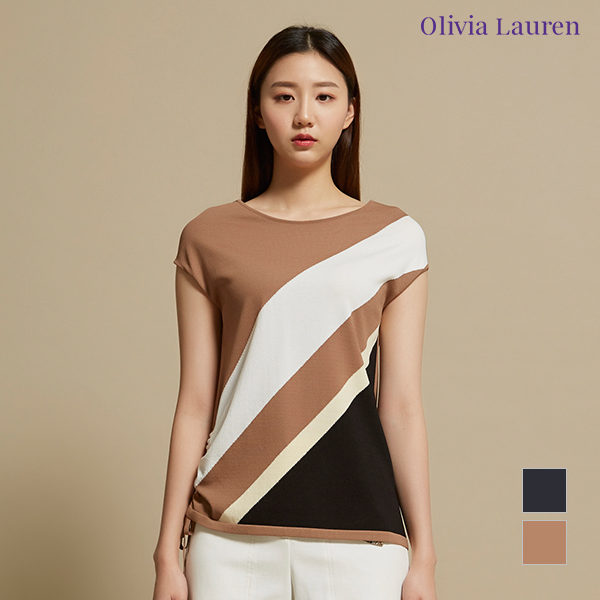 [올리비아로렌] 사선 배색 슬리브리스 니트_VOCBNWM3211