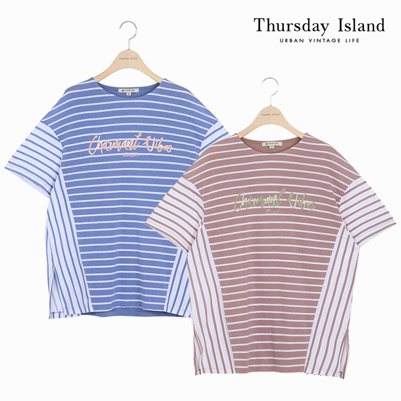 [Thursday Island] 여성 스트라이프 믹스 오버핏 티셔츠(T204MTS245W)