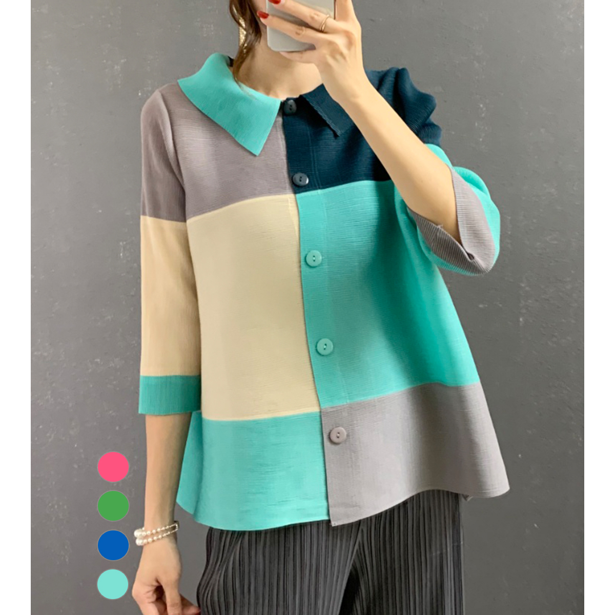 플라라 (88까지)다칼라배색플리츠자켓_PK2SJK007C