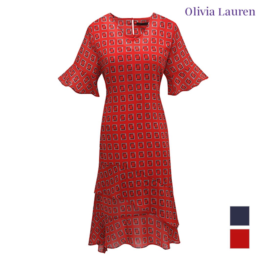 [올리비아로렌] 브이넥 슬림 텐트라인 층층이 원피스_VOCOAUM5416