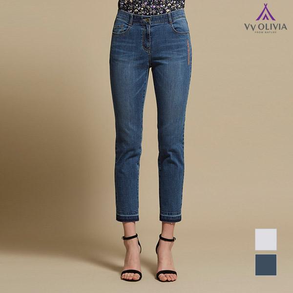 [비비올리비아] 밴딩 포인트 워싱 데님_VVCMPWM3311
