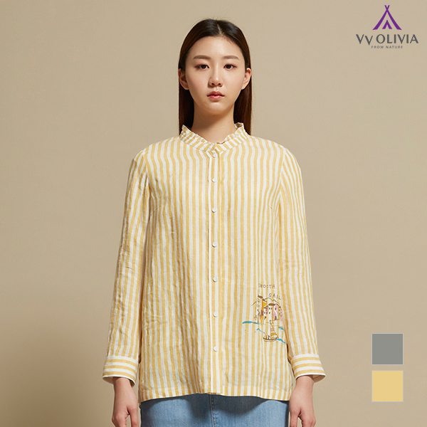 [비비올리비아] 린넨 스트라이프 블라우스_VVCNLWM3221