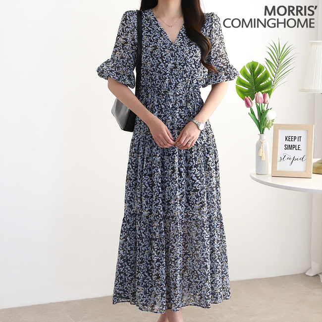 플라워 나팔 5부소매 쉬폰 원피스_M2204OP101B