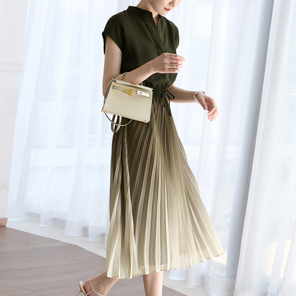 [키첼] 벨리 그라데이션 플리츠 원피스