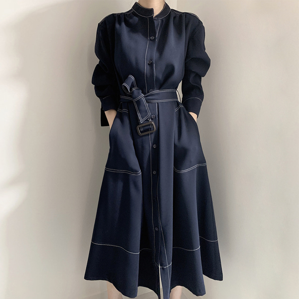 디망 스티치 벨트 롱 원피스_RB1OP003