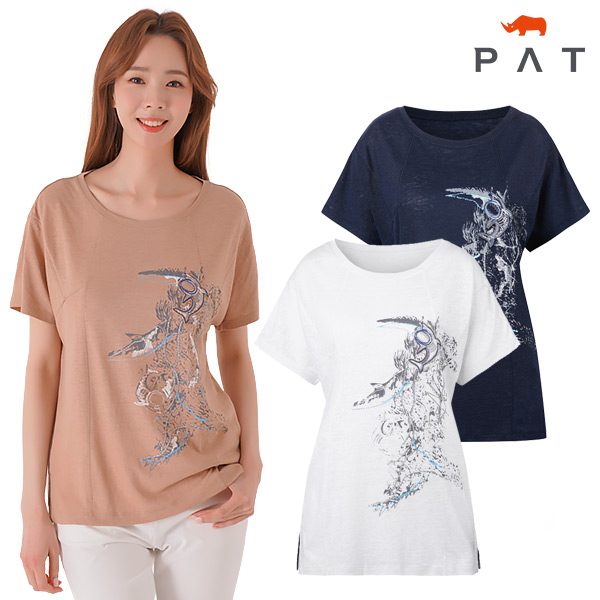 [여성] [Tag가 110,000원]린넨슬럽 자수 티셔츠_QE45303