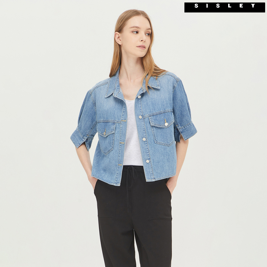 시슬리 반팔 크롭 셔츠 데님 자켓 SADKC1231_BL