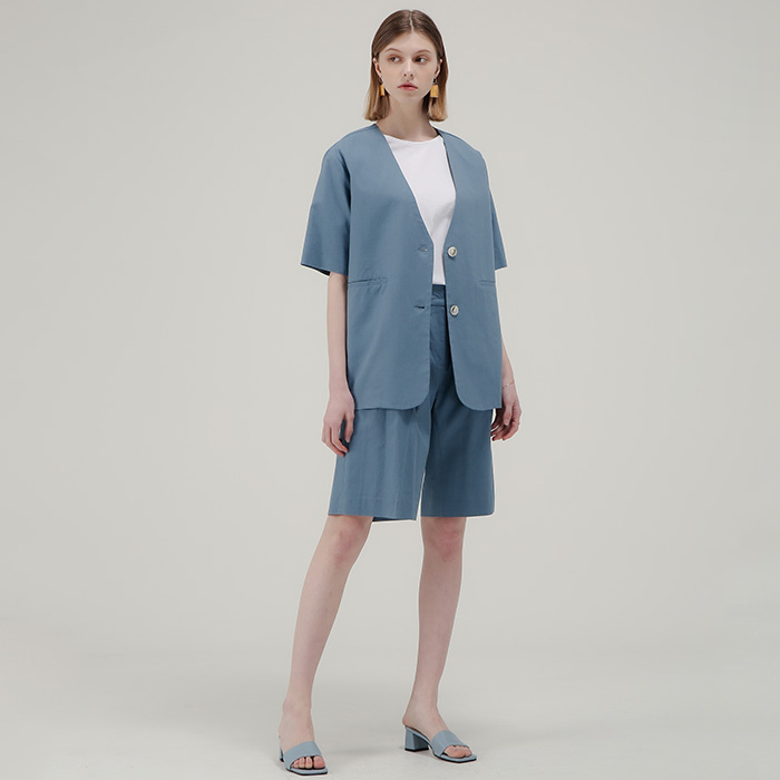 (귈림)[SET] 루즈핏 브이넥 솔리드 린넨 하프 셋업세트 (GAMJK01GPT02G)