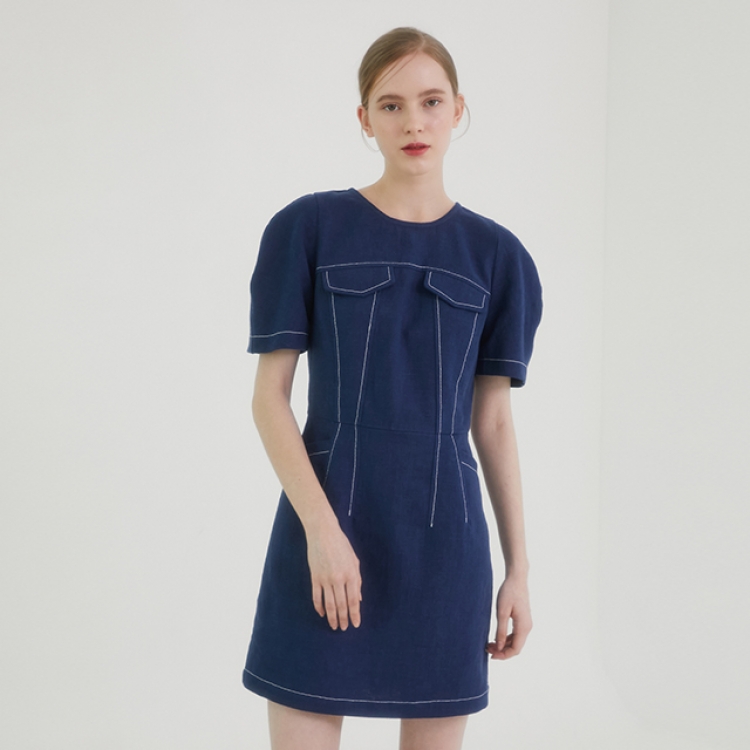 [Blue Label] 스티치 포인트 린넨 미니 원피스 EN2OOP12