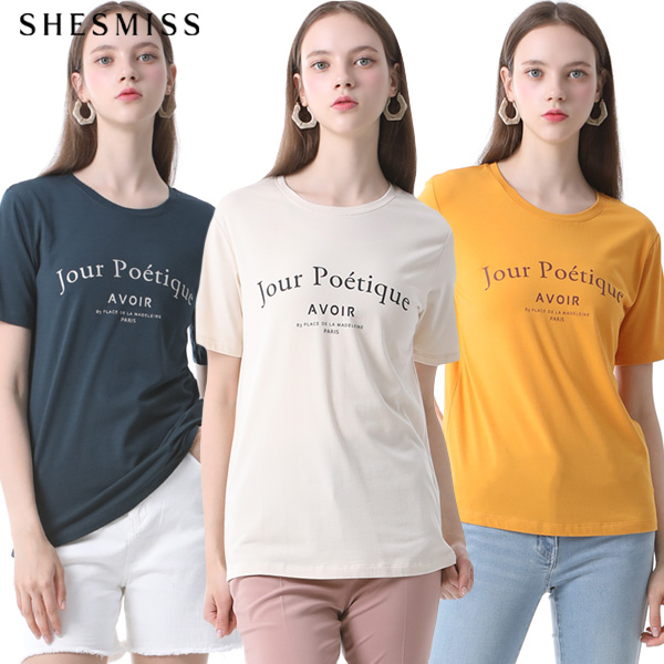 [쉬즈미스] 코튼 블렌드 레터링 반팔 티셔츠