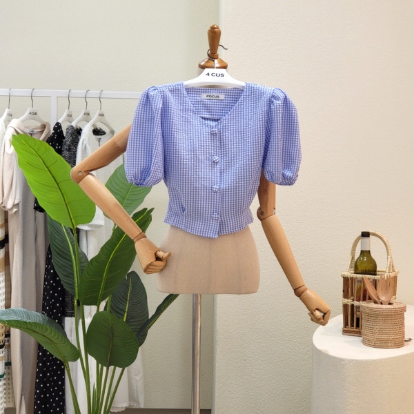 DB_ 4CUS 체크 볼륨 크롭 블라우스 (FM2E7BL06096)