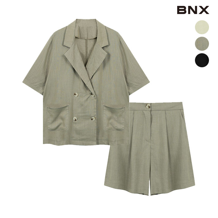 [BNX] 여성 린넨 터치 더블 반팔 자켓 반바지 세트