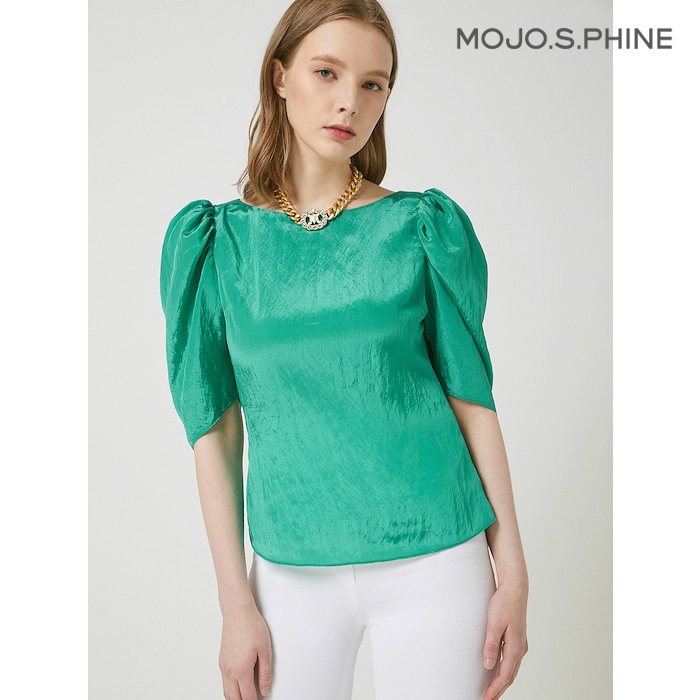 [모조에스핀] 어깨 셔링 슬림 블라우스 GN_J212MSC021