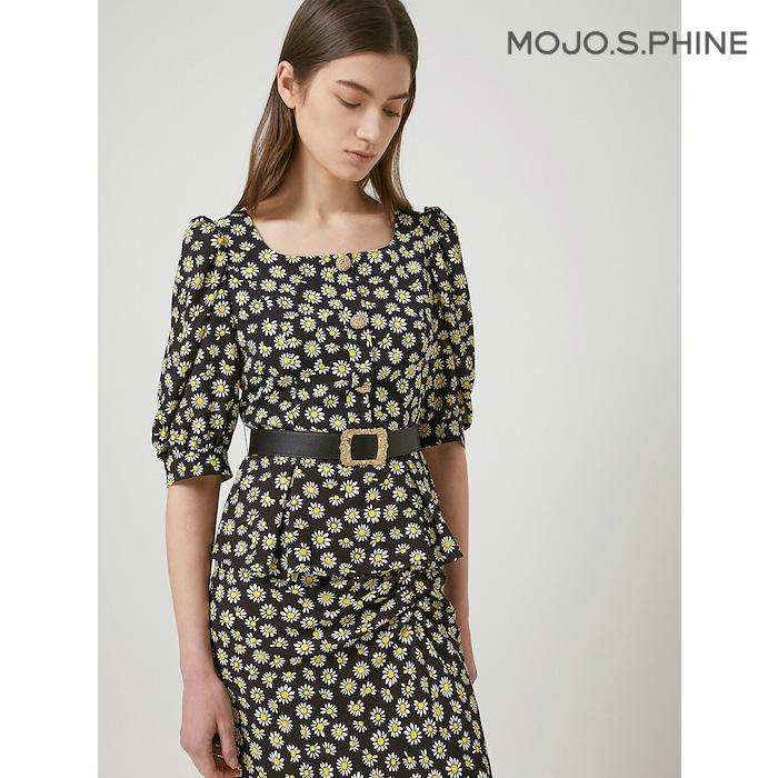 [모조에스핀] 스퀘어넥 플라워프린트 블라우스 BK_J212MSC018