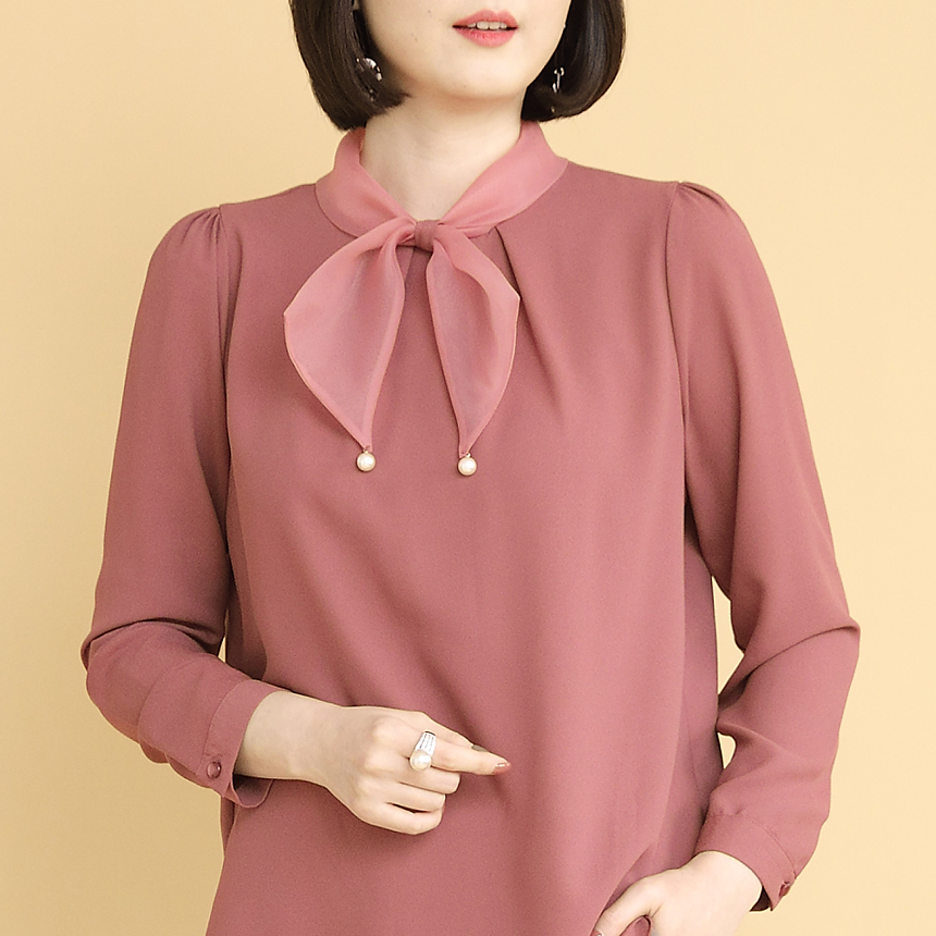 승무원 오간자 리본 진주 여성 봄 가을 긴팔 블라우스 B01210