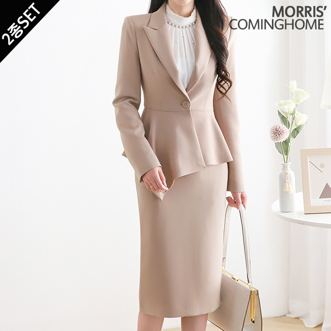 언발 페플럼 카라 자켓 H라인 스커트 2종세트_M2301SE010A