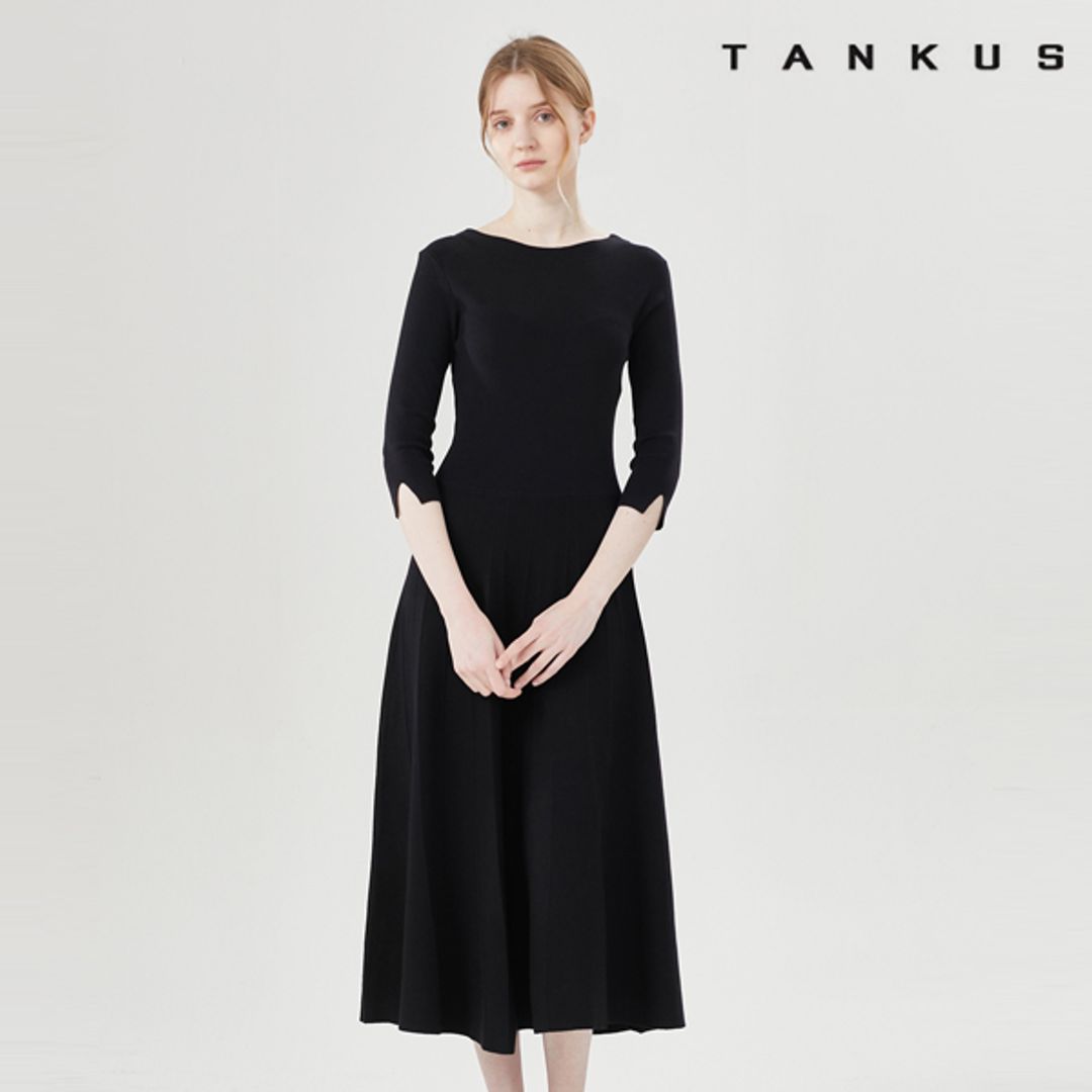 라운드넥 소매 트임 니트 롱 원피스 (TV1OP004L0)