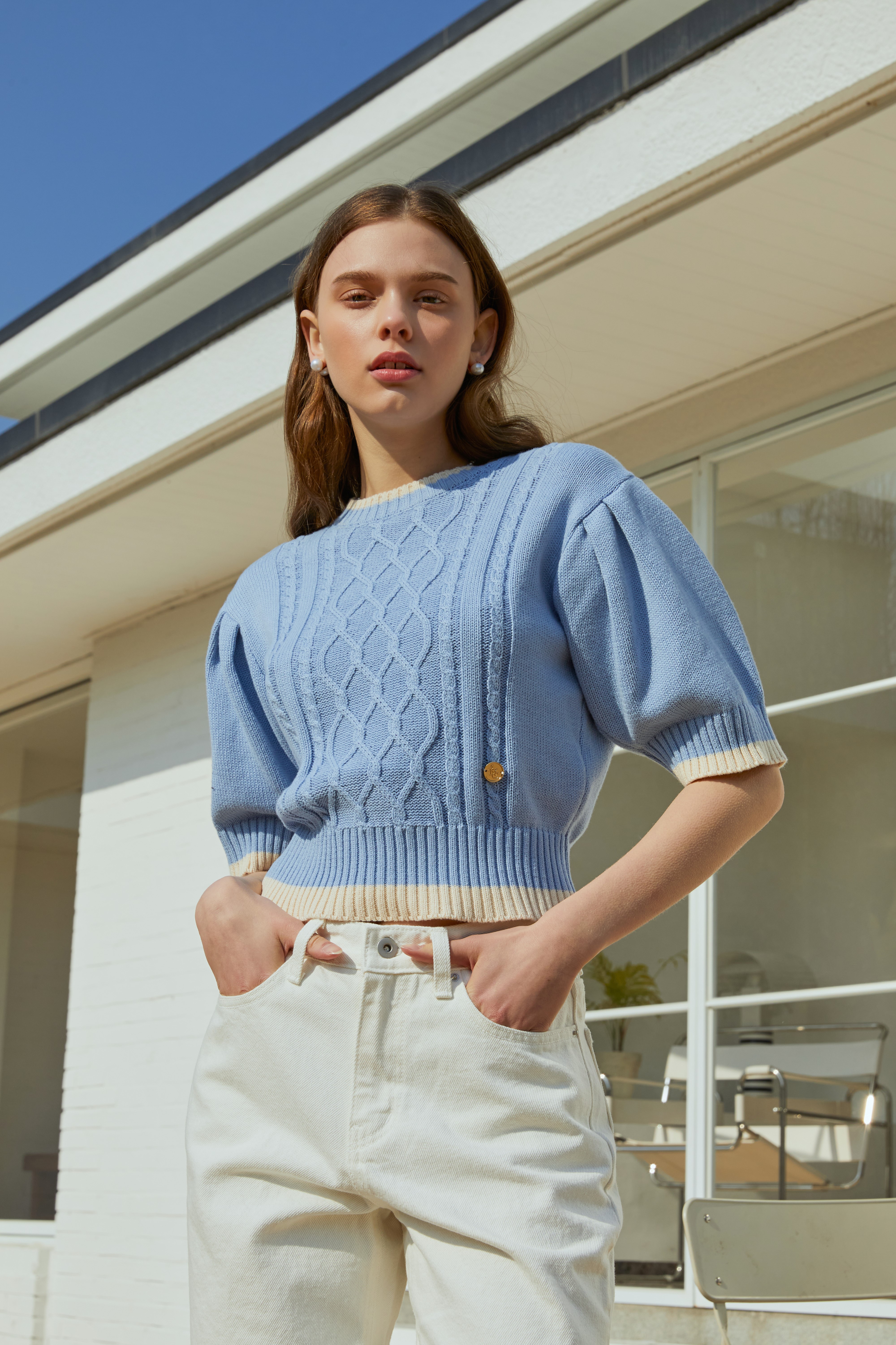 아노에틱 골드 퍼프 니트_블루