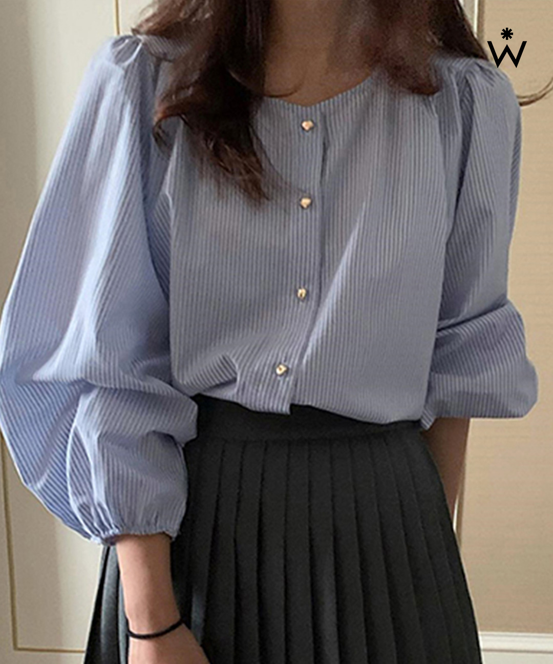 [주말한정 쿠폰] 하트 버튼업 러블리 셔링 코튼 블라우스 (WIAABL065)