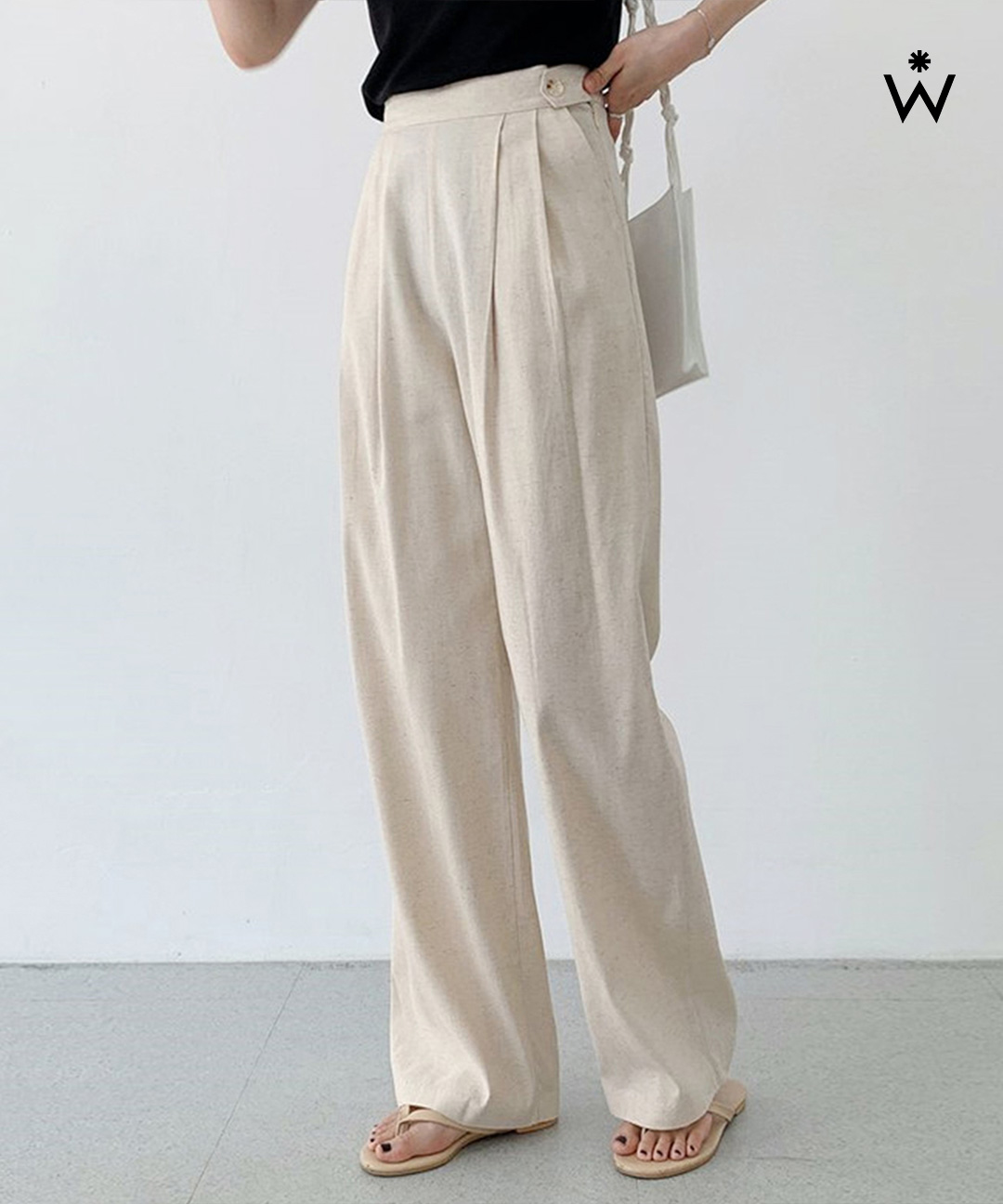 린넨 투 핀턱 사이드 버튼 와이드 팬츠 (WIAAPT017)