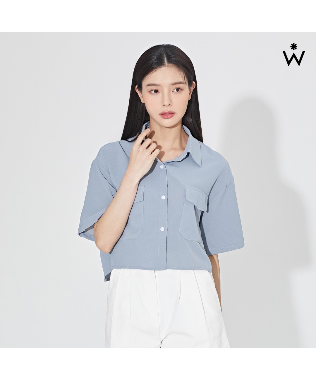 베이직 카라 포켓 크롭 반팔 블라우스 (WIAABL180)