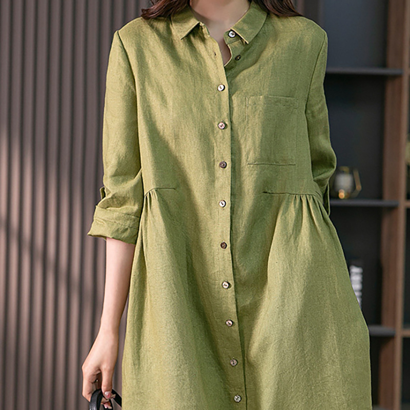 여성 넥카라 루즈핏 단추 셔츠 롱원피스 2color