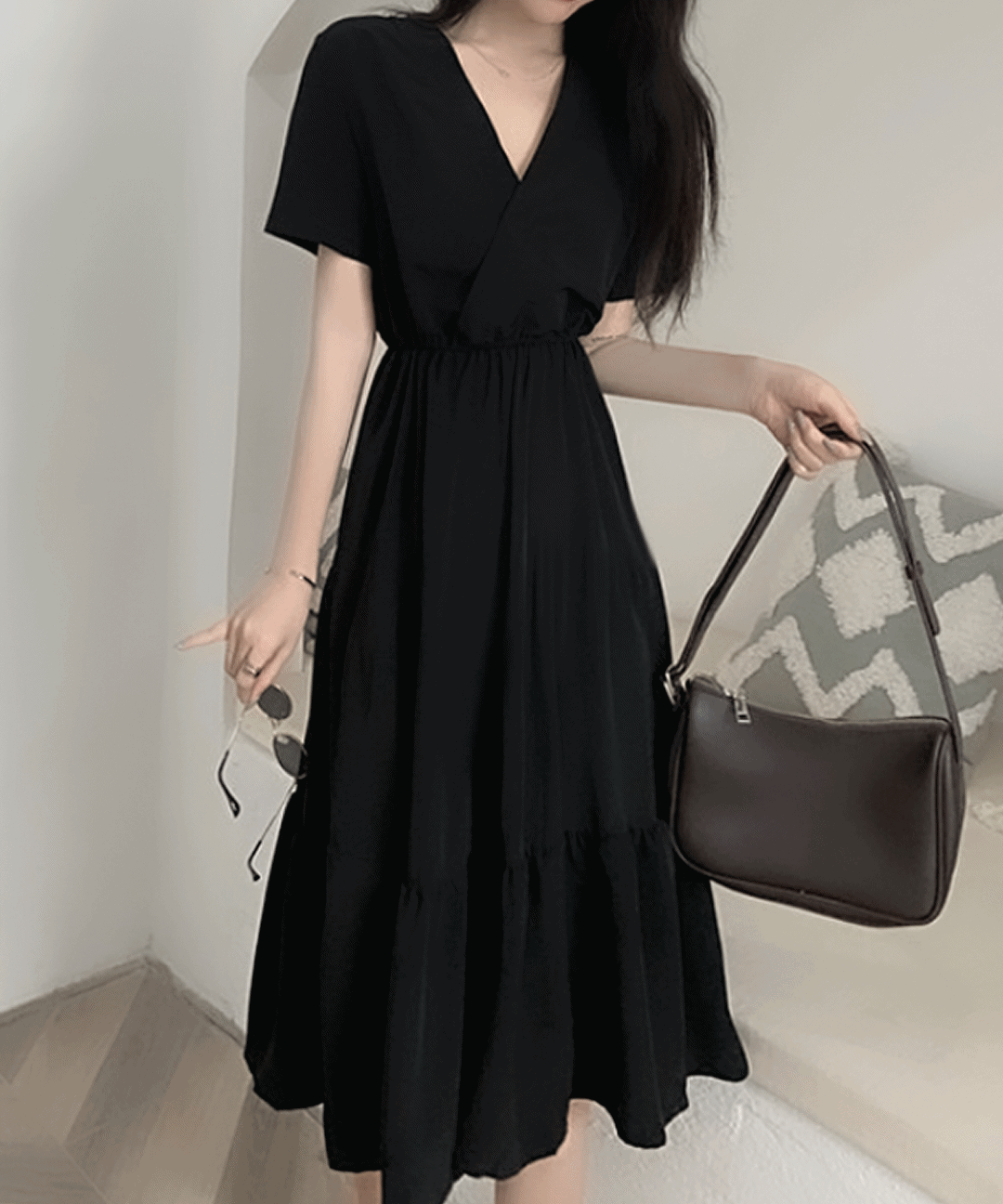 여름 비치웨어 블랙 쉬폰 롱 원피스