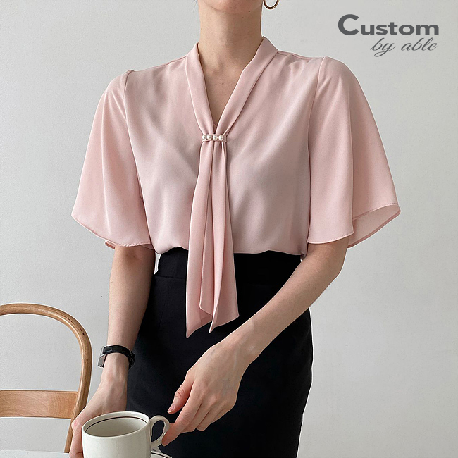 [한정/특가] 진주 타이 윙소매 블라우스_C2305BL084B