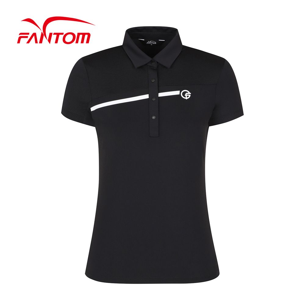 여성 라인 포인트 카라 반팔 티셔츠