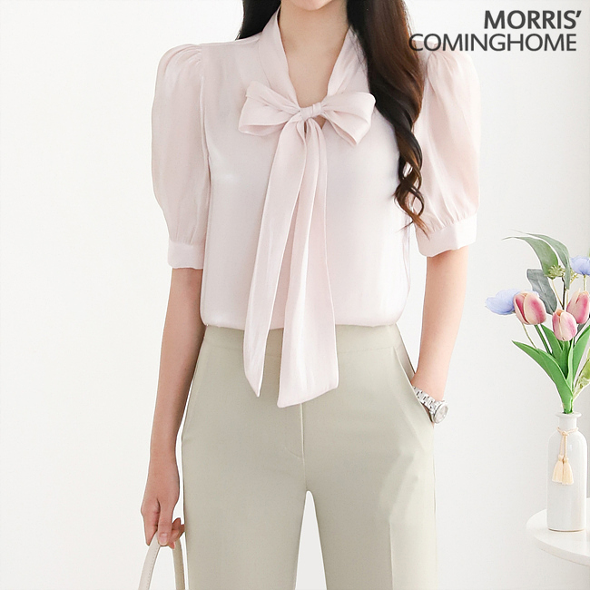 타이포인트 블링 퍼프소매 블라우스_M2306BL138B