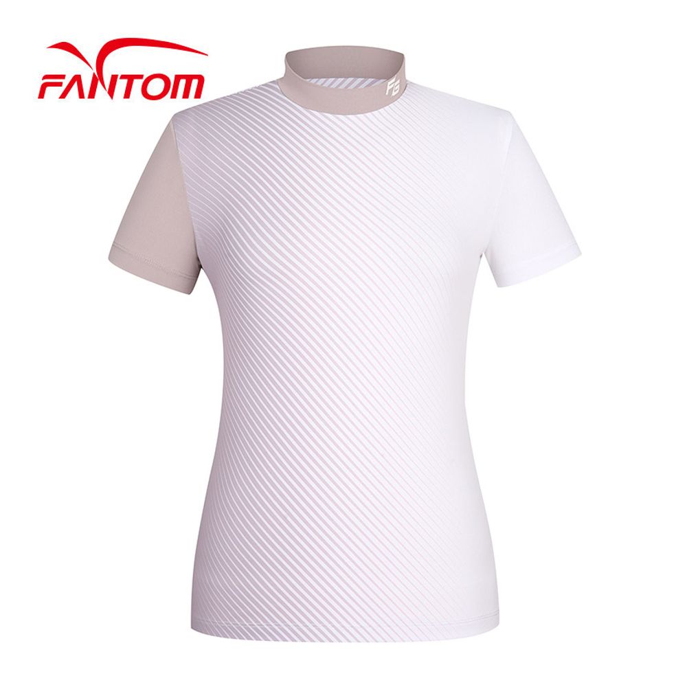 여성 스트라이프 하이넥 반팔 티셔츠