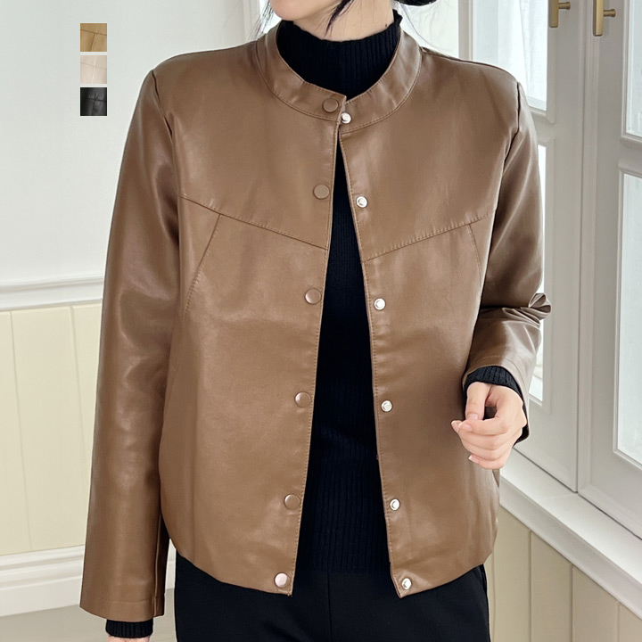 [당일배송]~77까지 베이직 에딘 노카라 스냅 버튼 레더 자켓