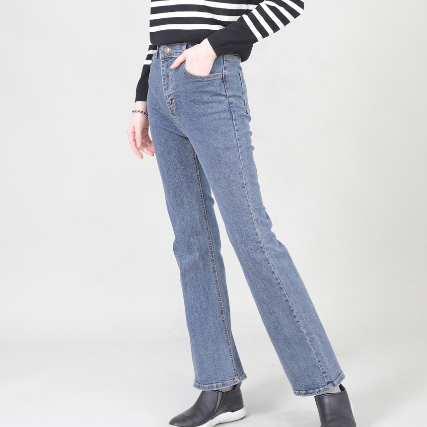 빈티지 진 워싱 허리밴딩 스판 여성 봄 가을 부츠컷 청바지 P09316