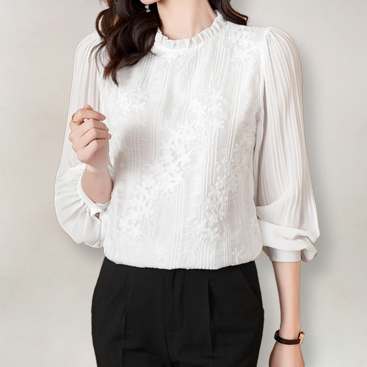 [당일출고] [~77까지]리드티 플라워 디테일 프릴넥 블라우스