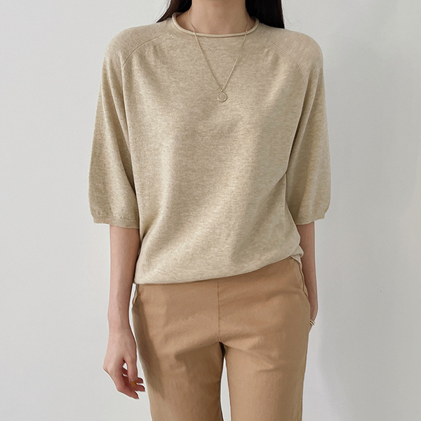 [어반프랑] 돌돌이 루즈핏 5부 라운드 반팔 니트