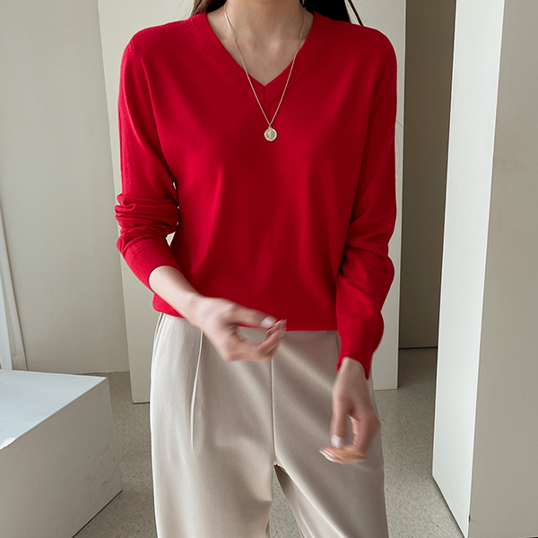 [어반프랑] 라이바 비스코스 기본 브이넥 니트